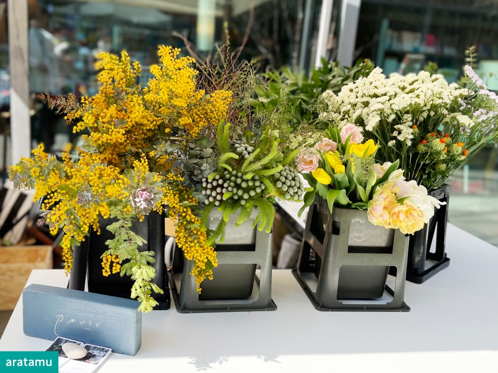 クリエーターたちがつくるタイムレスなデザインをアートスペースのように紹介している「aratamu」では、シンプルで可愛い小物類や「花をインテリアに」をコンセプトに掲げる生花店(PAUSE)とのコラボが多くのファンを獲得。ウォッチバンドの「BAMBI」では動物レザーキーホルダーを作るワークショップが好評を博し、子どもたちが楽しそうにモノづくりを楽しんでいました。