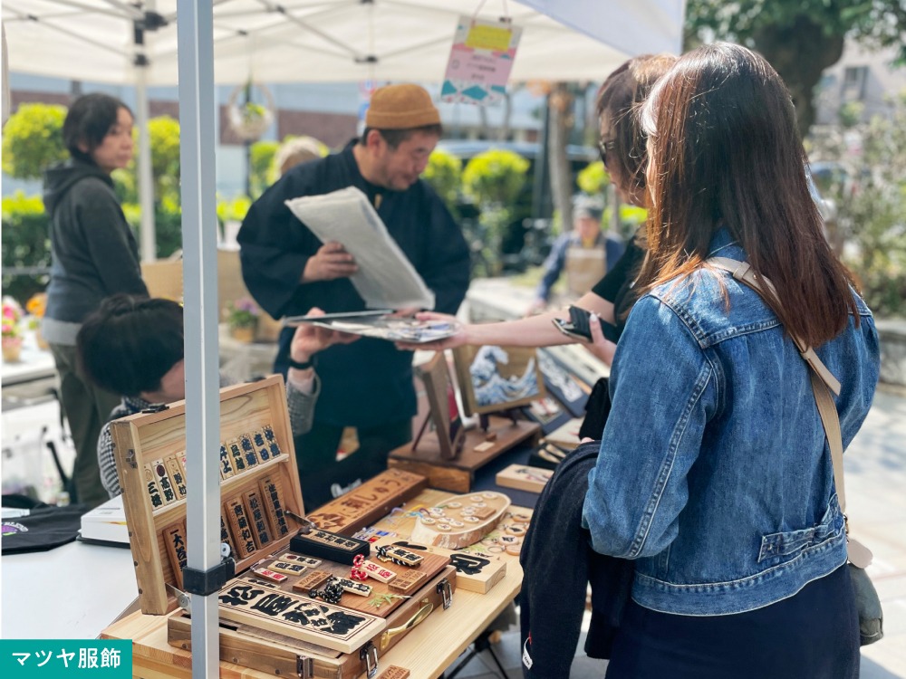 数あるブースの中でも強烈な存在感を放っていたのが、木に刺繍を施す「木刺」のブランド「マツヤ服飾」でしょう。北斎の絵をモチーフにした木刺のほかお名入れ刺繍のミニ畳も圧巻。土産にと買い求める外国人客の姿も目立ちました。